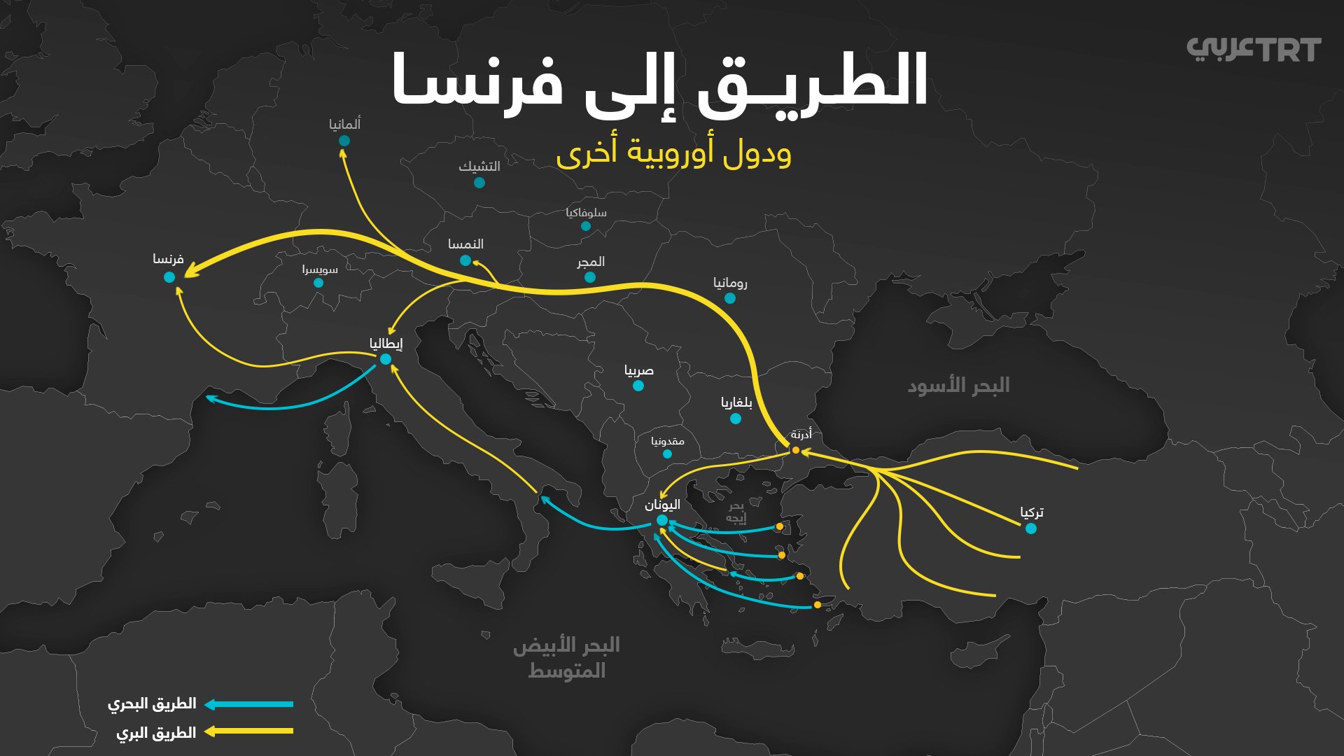 Trt عربي On Twitter الطريق إلى فرنسا خريطة توضيحية للطرق التي من المحتمل أن يسلكها اللاجئون من تركيا للوصول إلى فرنسا ودول أوروبية أخرى Https T Co Bkgh7bs30m